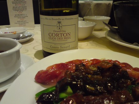 2000 Comte Senard Corton Clos des Meix Grand Cru, popped and poured over a late dinner on 15 March at Jade Palace. Lovely shade of pinot. Rather reticent on the nose, not offering much apart from a hint of red fruits and preserved dates. Made up for it on the palate with a broad expanse of red berries and cherries, soft and rounded with a bit of tannic bite and grip emerging after an hour.