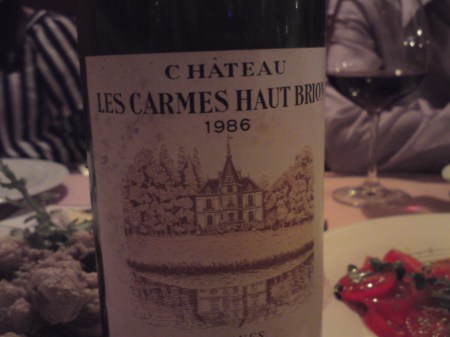 I’ve never really had a chance to try Ch Les Carmes Haut Brion, but when I spotted a bottle of the 1986 last week going for only SGD76 (unbelievable!), I knew there was no better opportunity than this. Opened and decanted this evening at Ristorante da Valentino, a lovely restaurant owned, managed and run by an Italian family off Rifle Range Road in Singapore. The cork was fragmented, but thankfully the wine was otherwise intact. Fully mature in color. A bit reticent initially, but it began giving off enticing aromas of ripe red and black berries, redcurrants, a bit of cinnamon and orange peel with a sense of heated stones, earth and gravel, well mellowed after 25 years, producing a soft, smooth wine that still possesses plenty of body and grip, revealing good concentration and depth, tapering to a plummy glowing finish with barely a hint of rusticity. Has all the attributes of a well-aged claret, a commodity that’s increasingly rare in a world impatient to drink wines in their infancy. This is a wine that’s still holding on at its drinking plateau, with no hint of drying up. You can’t really tell it’s a Pessac-Leognan, as most aged Bordeaux tend to regress towards a common form, but it’s an excellent wine in its own right, and a truly superb bargain.