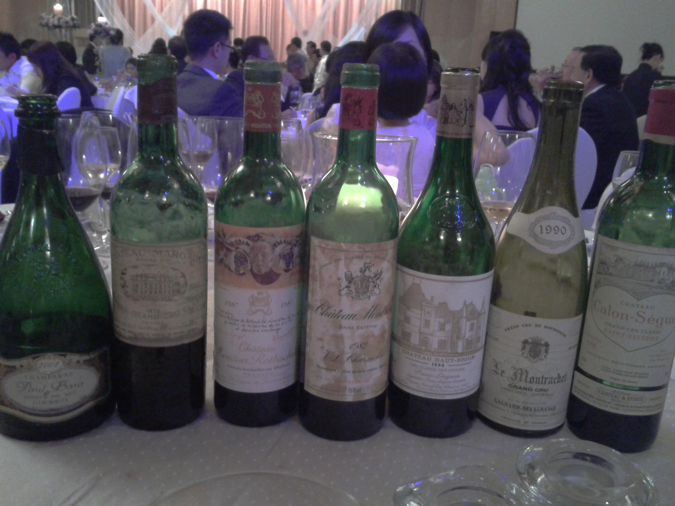 Daniel’s wedding: 1990 Gagnard-Delagrange Montrachet, 1994 Haut Brion, 1970 Margaux, 1987 Mouton-Rothschild,1982 Montrose…