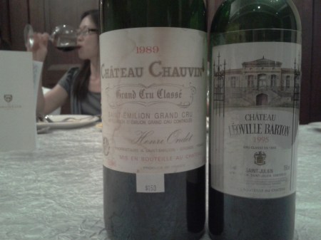 1989 Ch Chauvin, a magnum bottling at the Tanglin Club, 15 Sep 2011. Aired in bottle for an hour, showing an evolved red that’s still fairly concentrated in color.