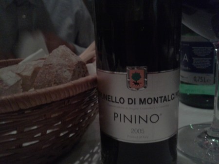 2006 Pinino Brunello di Montalcino, a half bottle from the restaurant list over dinner at Zafferano, 19 Oct 2011, for GBP52. Rather full-bodied and one-dimensional initially, almost overwhelming with a mix of red and darker berries, although one appreciates the excellent concentration and balance without any jarring edges in spite of its relative youth. The alcoholic trace receded over time and food, the red fruits becoming more dominant, the wine opening up to reveal more layering, supported by darker fruits beneath whilst the subtle plumminess of sangiovese became more noticeable. Very good, really. I find that Tuscan reds offer some of the best value in restaurant lists and this is no exception.