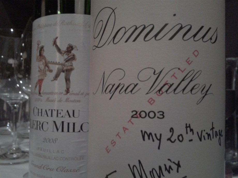 Notes in brief (Oct 2012): 2003 Dominus, 1998/2003 Pape Clement, 2001 Calon Segur, 2004 Penley Reserve…