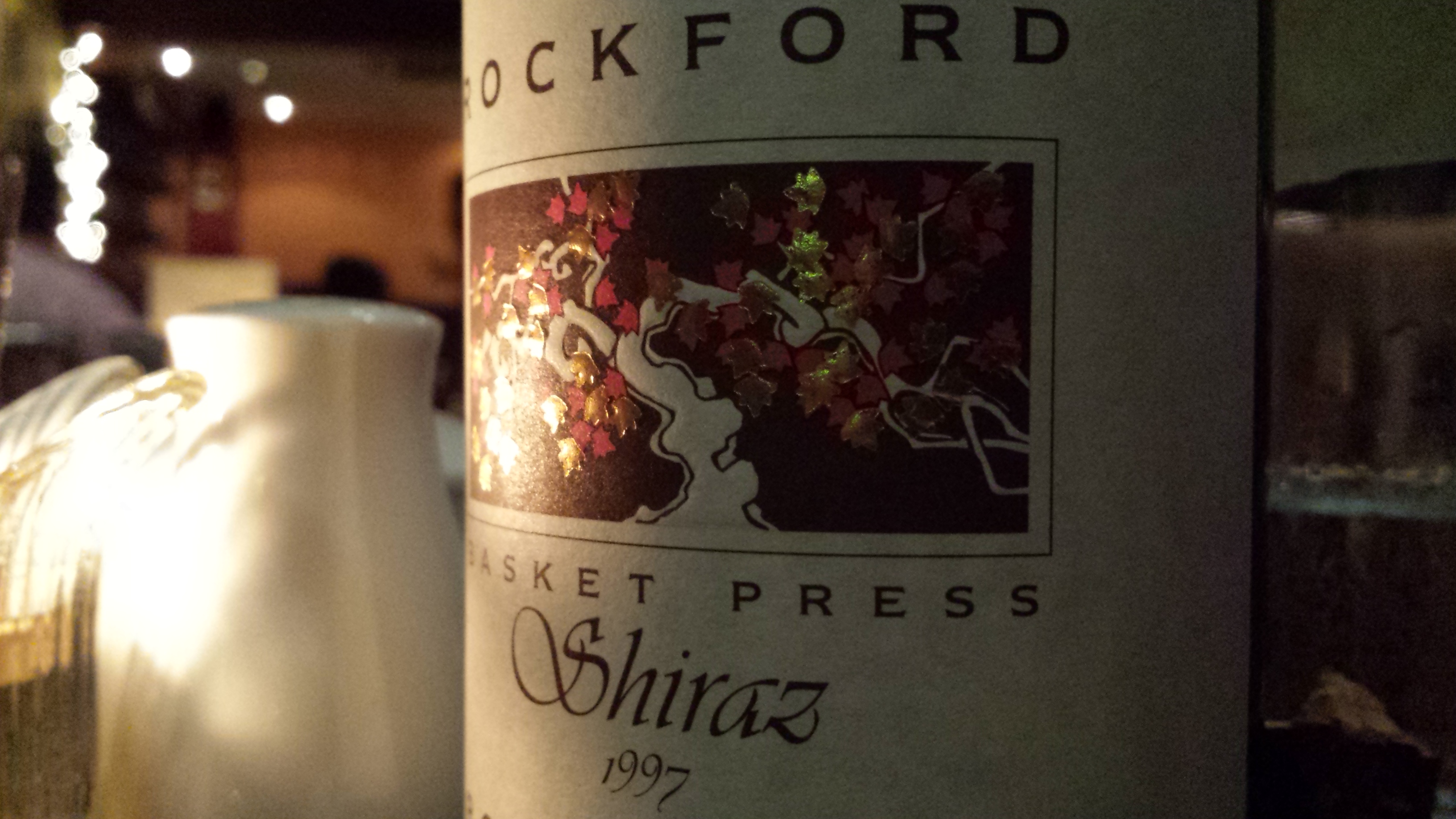 1997 Rockford Basket Press Shiraz, popped and poured at Foster’s Steakhouse, 30 Aug 2014. I’d cellared this bottle, my last, for several years and I thought it would be interesting to see how this Rockford, from a supposedly weak vintage, would fare 17 years after vintage. The results are glorious, though not immediately apparent at the first pour where the dusty red wine was notably already quite open, predominantly characterised by notes of menthol, ripe sultanas, cedar and herbal aromas. Things gelled together within 30-45 minutes as the medicinal quality receded to allow more of ripe red plums and tangerine and wild berries to emerge, coupled with savoury sweet meat amidst great acidity with slick racy tannins bringing up the rear. Exciting, complete and harmonious. Jeremy Oliver is completely wrong about this wine. This 1997 is far from over the hill. In fact, it is at its very peak.