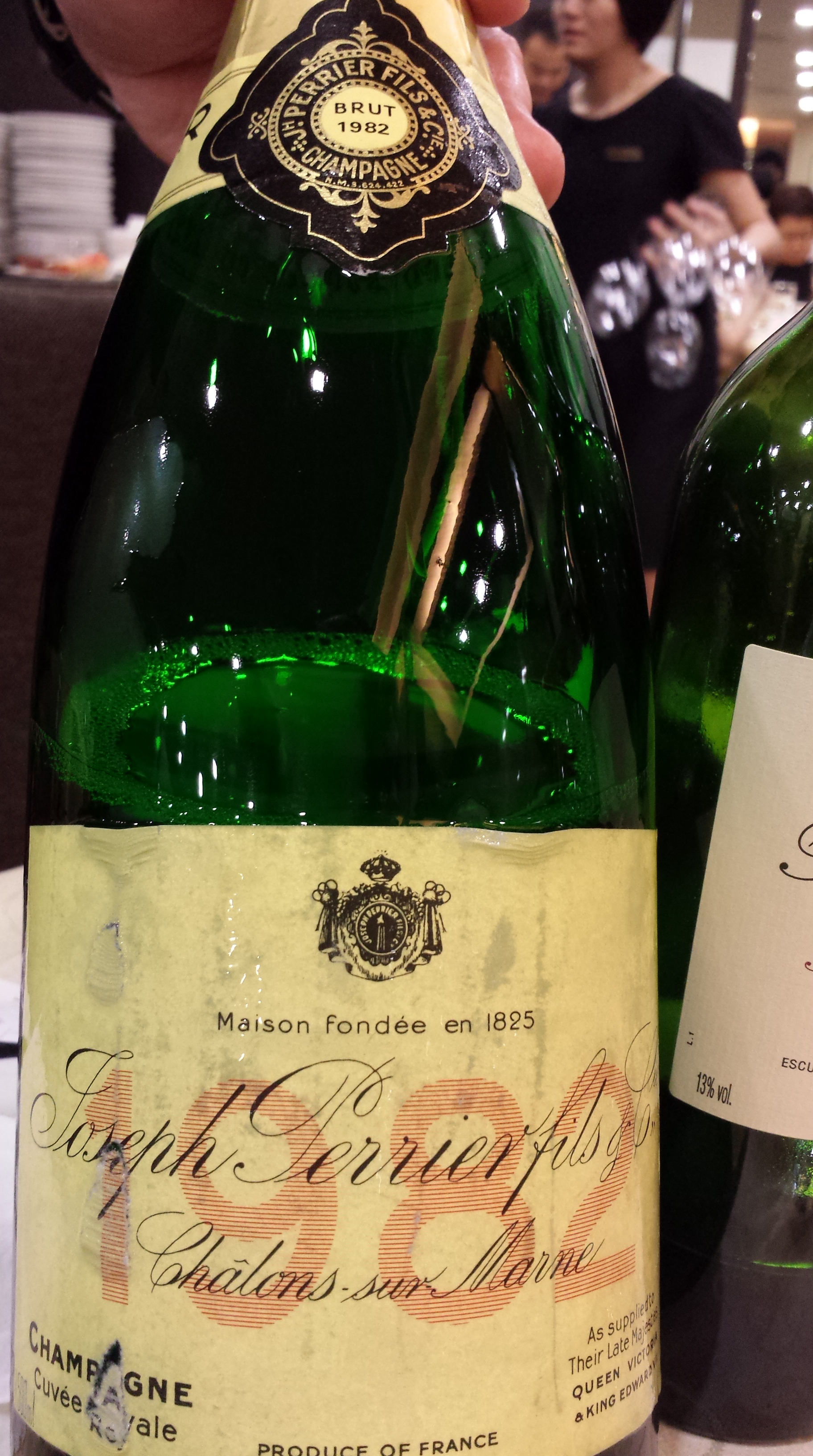 1982 Joseph Perrier Fils et Cie (courtesy of Augustine Kum), poured from magnum at Jade Palace, 25 April 2015. It was good to bump into Auggie again and very kind of him to give me a generous pour of this fabulous champagne that’s apparently only bottled in large format, all the better for this 33-year-old is still remarkably fresh and vibrant with complex flavours of frangipani, barley, rock melon, pomelo and clear citrus against a backdrop of subdued minerality and other yeasty overtones, finishing with an attractive steeliness. No wonder William and Kate chose it for their wedding. Outstanding.