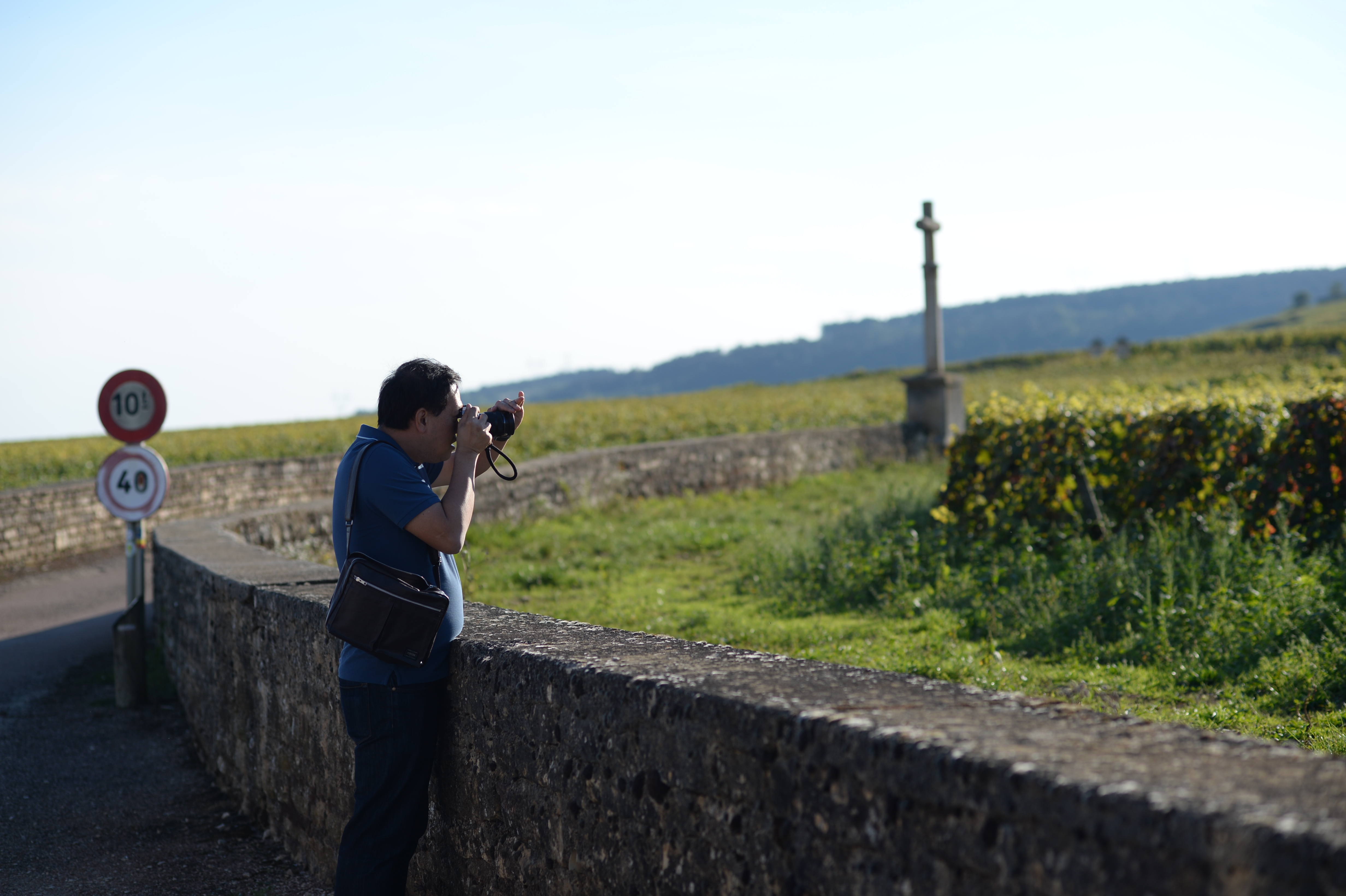After a leisurely breakfast on 27 September 2015, we drove down south of Beaune to the sleepy township of Puligny-Montrachet where it was very good, once again, to be able to walk up the gentle slope of the Côte de Beaune from the D113 secondary road and to tread gently at the skirting of Bienvenues-Bâtard-Montrachet, followed immediately by Bâtard-Montrachet and then Montrachet itself, where the twin pillars of Marquis de Laguiche stood silently at a corner. Memories of the lovely Grand Crus that we have had over the past couple of days from these vineyards of Bouchard Père & Fils and Joseph Drouhin came flooding back. Harvesting for the 2015 vintage has concluded but, here and there, one can see forlorn bunches of grapes left untouched by the pickers, a poignant reminder about how absolutely fastidious the winemakers must be in choosing their grapes and how much hard work has been done by all these passionate individuals just purely for our pleasure.