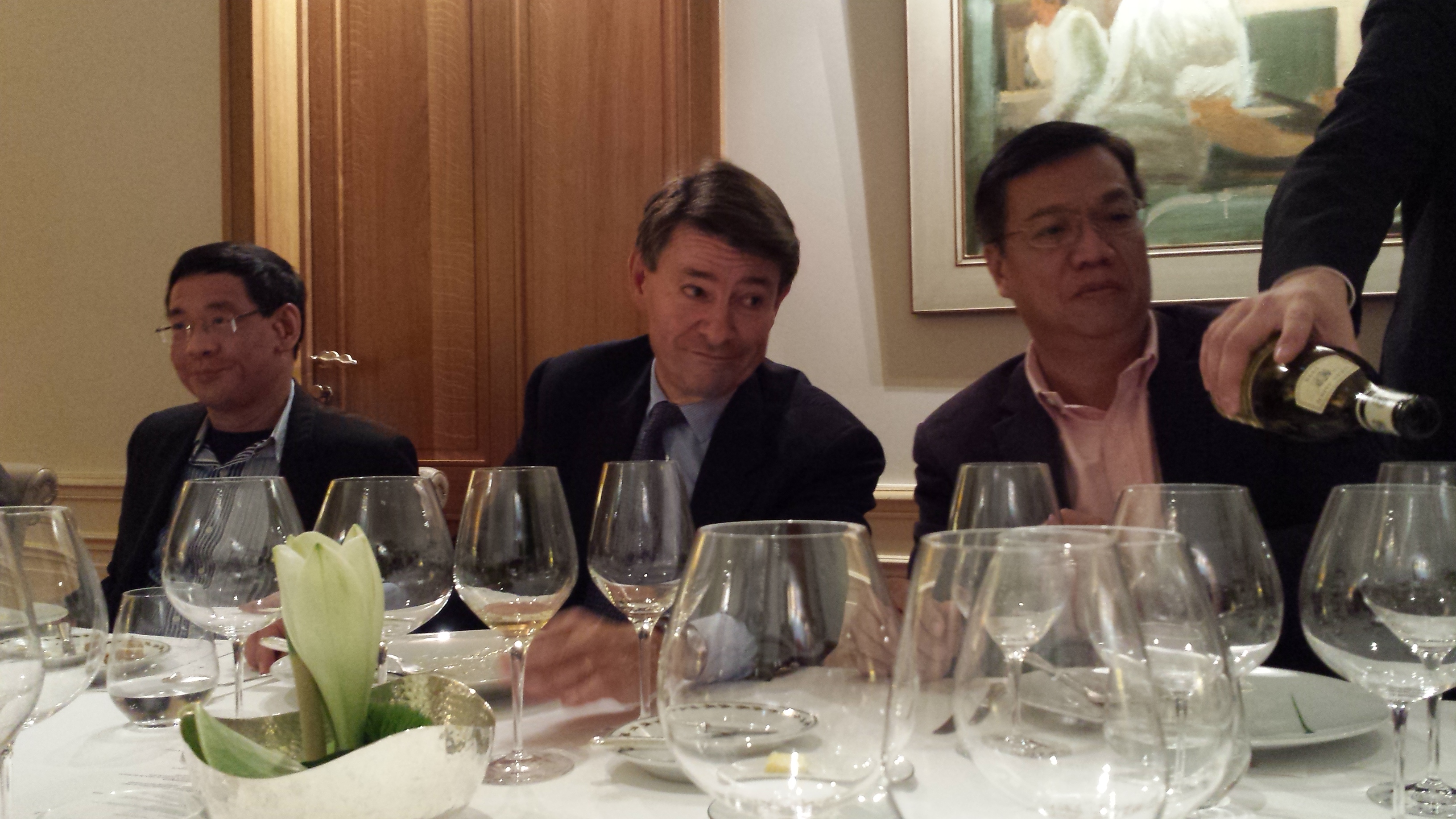 After having barely digested an excellent late lunch (with Yannick Champ in Pommard) on 27 September 2015, we drove down south to Chagny for dinner at the three-Michelin-starred restaurant Lameloise, located within the hotel of the same name, where it was very good to be welcome by the same familiar faces that I had met during my first visit in June last year. A long table for 13 pax had been set for us in its private dining room where we were joined by M. Jean-Paul Dumond of Joseph Drouhin as well as the true père et fil team of M. Pierre-Henry Gagey and his son Thibault Gagey, owners of Louis Jadot. The venerated chef Eric Pras had prepared a generous four-course meal (a relative bargain at EUR190, considering this is dinner) and all we had to do was to select some wines from the extensive carte de vin to go with it. KG did the honours with minimum fuss and, before we knew it, we were tasting the Champagne Henri Giraud Fut De Chene Ay Grand Cru (2007 disgorgement), highly complex on the nose, suggesting great depth with characters of toast, charcoal ember, yeast and sweet citrus with a mild attractive pungency, generously proportioned and balanced without being too dry.