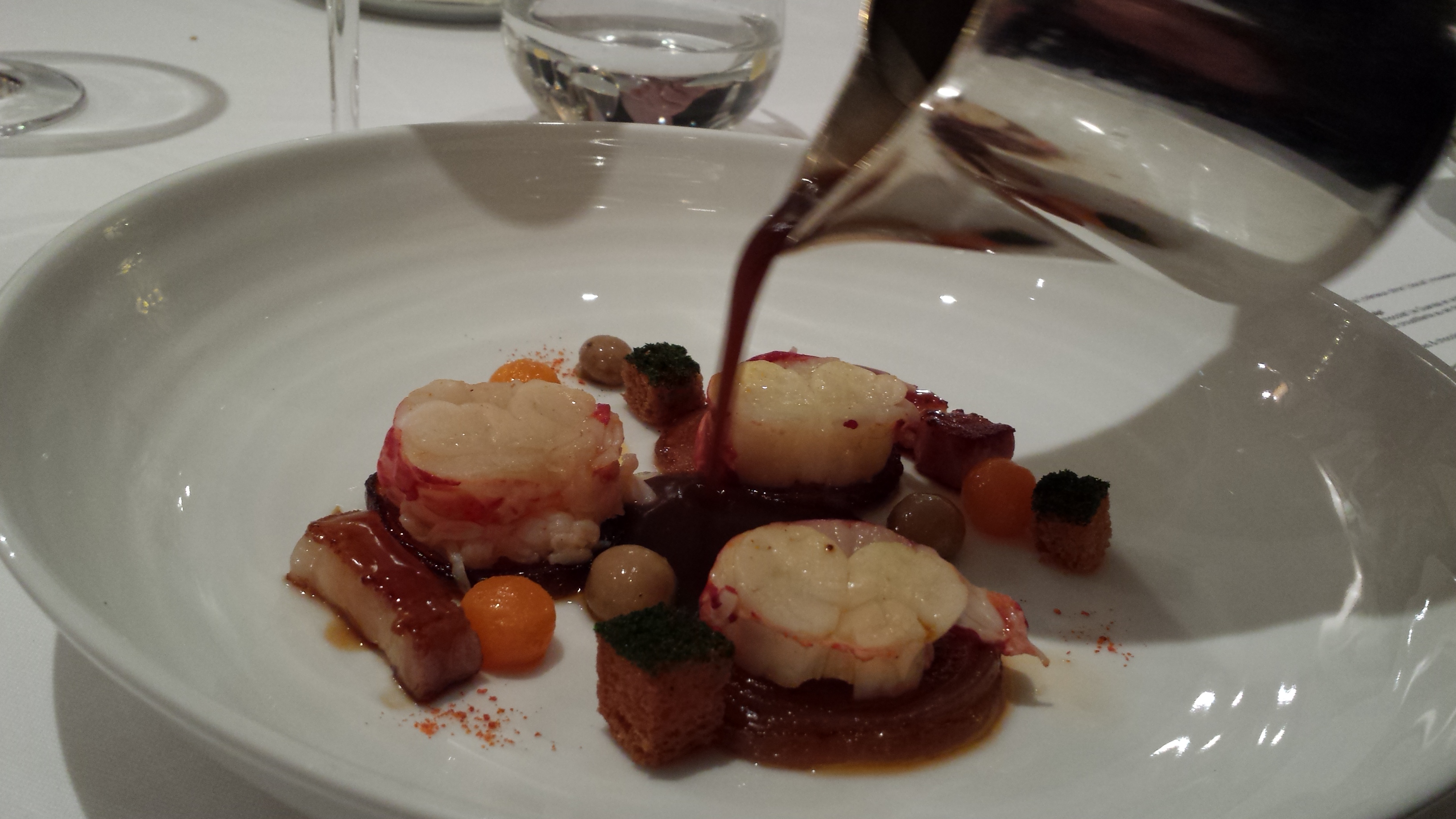 The first course of foie gras de canard et perche was paired with a 2007 Domaine Coche-Dury Meursault, the second such wine we had from the same producer within the same day (a 2009 was drunk during lunch). Coche-Dury always carries a hefty premium but, after having experienced it, one begins to understand what the fuss is about. Lifted aromas of almonds with overtones of honey and a trace of rock melons hinted at excellent depth of fruit, living up to its promise with delicate but intense citrus on the palate, enhanced immeasurably by the crisp acidity that cut effortlessly through the texture of the foie gras.