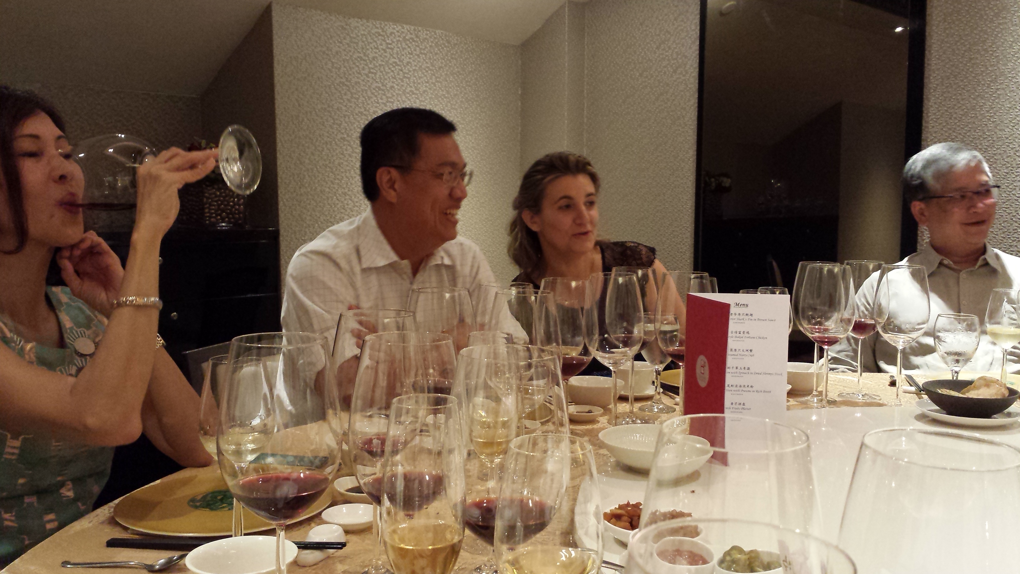 Little did we realise, less than a month after we had first met Mme. Delphine Tronchon, CEO of FICOFI Paris, at Vosne-Romanee, that we would have a chance to play host to her for dinner at Tunglok Signatures, Orchard Parade Hotel, Singapore, on 20 October 2015 where, as usual, Dr Ngoi had arranged a delectable 5-course menu in its private room. An all-Burgundy line-up was planned and I must say that the Tunglok staff surpassed themselves this time, making sure that each different wine was poured into a new glass.