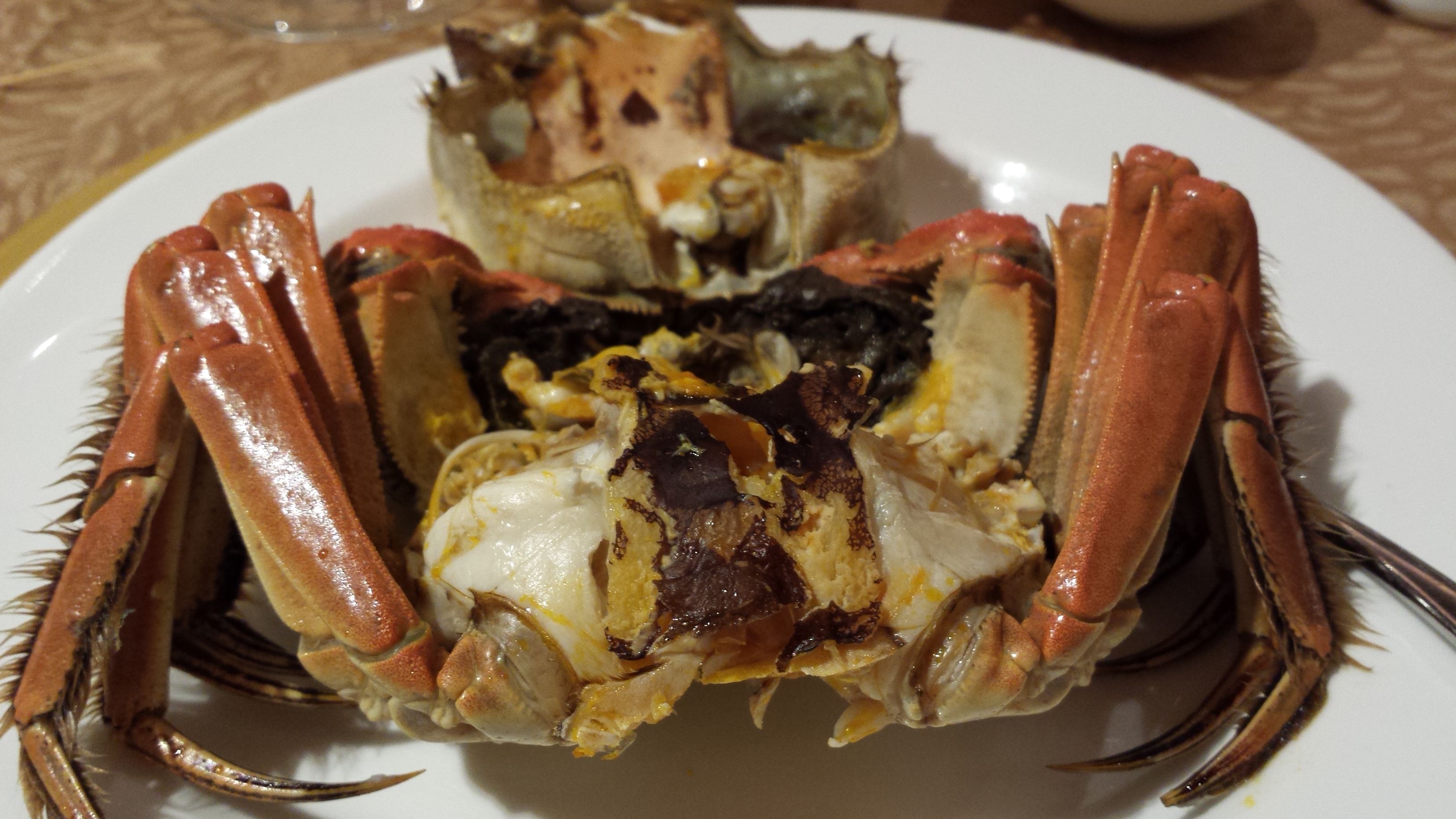 This was followed by a pair of reds to go with the next dish of baked chicken, a 2008 Meo Camuzet Vosne-Romanee (courtesy of Miah Hiang), intense in color and bouquet, dominated by notes of earth, rich red fruits and dark berries of excellent depth, structured, balanced and refined, a wine of great finesse that belies its village status. Drunk alongside, the 2006 Prieure-Roch Vosne-Romanee Les Suchots 1er (specially sent over for us by its winemaker Yannick Champ and carried by Delphine herself) was highly individualistic with an attractive earthy pungency amidst high-toned minerality, tangerine and red fruits, settling down eventually with refined intensity, just a tad short. The next course of hairy crab was paired with a 2010 Henri Boillot Puligny-Montrachet Les Pucelles 1er, displaying great typicity with its fabulous complex of intense minerality, apples and crème de la crème with a slightly forward balance, developing more fat with an oily texture and a dash of coconut after some time, ending with great persistence. Superb.
