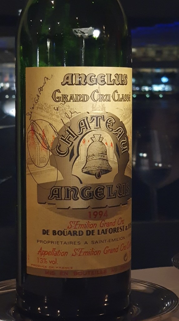 I first met Monsieur Hubert Boüard de Laforest, owner of Château Angélus, at the turn of the new millennium at Carrefour, Singapore, (before it closed down) where he had very kindly autographed a couple of bottles of the 1994, a vintage special to me. When I met up with Hubert again a couple of weeks ago in Singapore, he still remembered the event and he even went on to say that he is especially fond of the 1994 (followed by the 2001 and 2007). Of course, most people are aware of the difficulties of the first few vintages of the Nineties, but these wines from so-called “off years” can still spring a surprise Indian Summer many years down the road. Aired in bottle two hours ahead of dinner at Saint-Pierre, Singapore, on 30 May 2023, the 1994 Château Angélus is still very deeply coloured, darkish purple at its core with just a bare tint of crimson. The bouquet is simply gorgeous, leaping out of the glass with a stunning complex of mature raspberries and black fruits underscored by some reductive pungency and brilliant graphite that teased with sexy lift, delivering its promise with a layered depth of delicious dark fruits on the medium-full palate. Still remarkably vibrant and seemingly half of its twenty-nine years, this wine kept evolving with emerging notes of mocha, cinnamon and rhubarb, boasting superb acidity and sophisticated tannins that exert smooth intensity and attack, maintaining its poised elegance and cool ripeness throughout before finishing in a lengthy spicy glow. Outstanding! One can truly understand Hubert’s special affection for it. Quantities of the 1994 must be really scarce by now. Catch it at its peak now if you’ve any, though it can easily keep for another decade.