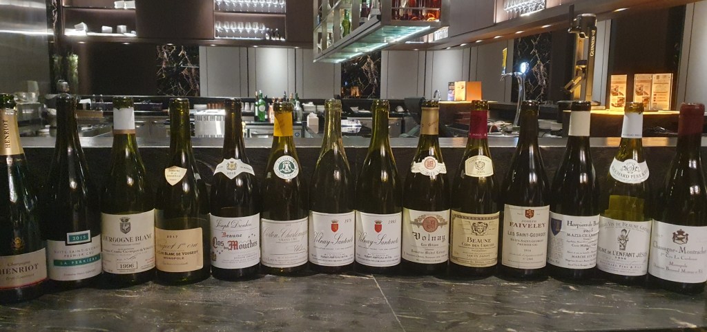 1996 Georges de Vogüé Bourgogne Blanc, 1976/1993 Robert Ampeau Volnay Santenots 2005 Louis Jadot Beaune Clos des Ursules 2005 Bouchard Grèves Vigne L’Enfant Jésus 2017 Bernard Moreau Chassagne Cardeuse