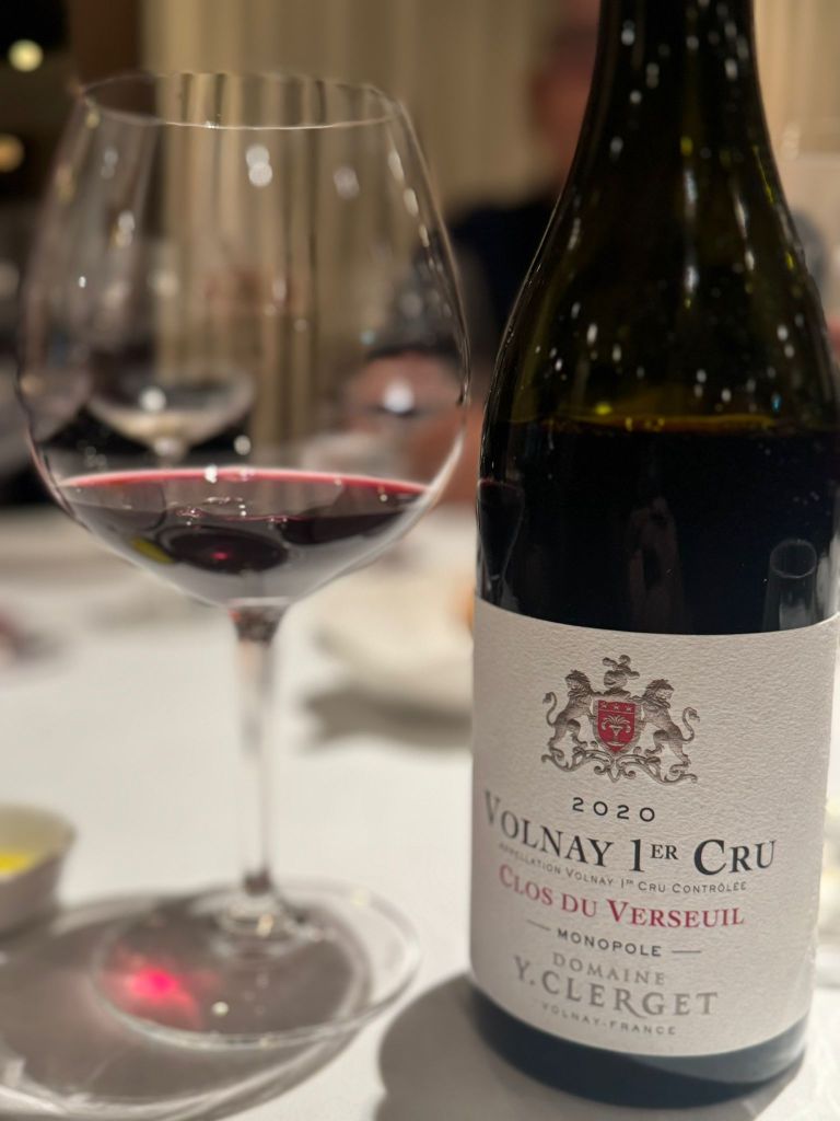 2020 Domaine Yvon Clerget Volnay 1er Clos du Verseuil monopole, courtesy of Vic at Otto Ristorante, 26 Nov 2024. Bright purple. Utterly seductive in its lush expanse of ripe raspberries, very gently oaked with a hint of sweet vanillin, matched by sexy tannins that flatter with seamless supple intensity almost to the point of voluptuousness. Distinctly feminine, and irresistibly delicious.