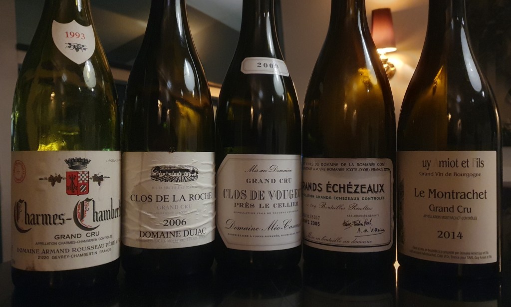 2005 Romanée-Conti Grands Échézeaux 1993 Armand Rousseau Charm-Chambertin 2009 Méo-Camuzet Clos Vougeot Le Cellier 2015 Henri Boillot Criots-Bâtard Montrachet 2006 Dujac Clos de la Roche Grand Cru & 2014 Guy Amiot Le Montrachet
