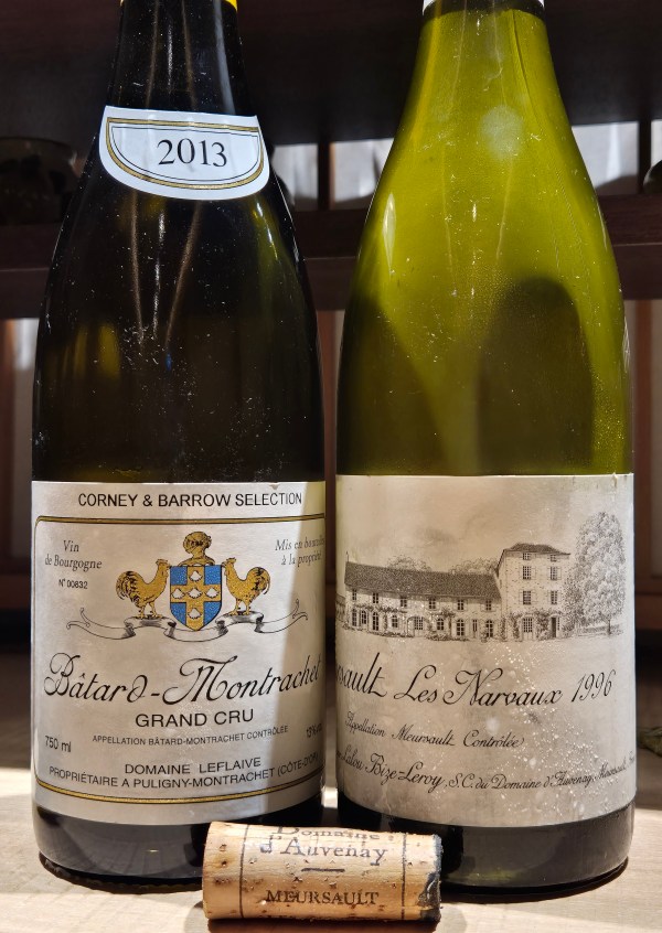 1996 d’Auvenay Meursault Les Narvaux, 2012 Drouhin Criots-Bâtard-Montrachet, 2013 Domaine Leflaive Bâtard-Montrachet, 2001 Domaine Leflaive Chevalier-Montrach’ 2016 Groffier Chambolle 1er Amoureuses, 2020 Romanée-Conti 1er Duvault-Blochet, 1994 Romanée-Conti Romanée-St-Vivant, 1985 Château Cheval Blanc