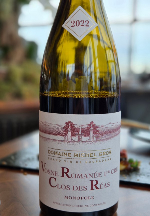2022 Domaine Michel Gros Vosne-Romanée 1er Clos des Réas monopole, courtesy of Kieron at 67 Pall Mall, 01 Sep 2025. Deep purple. Big, intense and racy, almost New World in its heady mix of vanillin, haw and ultra-ripe raspberries. Obviously well extracted but still immaculately proportioned with supple tannins to yield controlled power and refined intensity, just a tad austere with some gritty detail towards its finish.