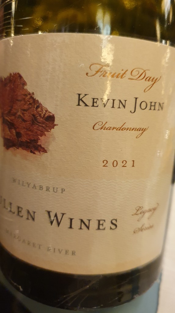 2021 Cullen Wines Kevin John Fruit Day Chardonnay, courtesy of Alvin. Dull golden. Shut initially, showing just a hint of recessed chalk before unfurling a dense bouquet of intricate floral detail that contrasted beautifully against a racy palate of rounded white chromatic tones, taut with fine definition and precision. The unusual hint of diesel at its lengthy finish gave away its New World origin, but it was still very difficult to place. Not the usual creamy buttery style. Excellent!