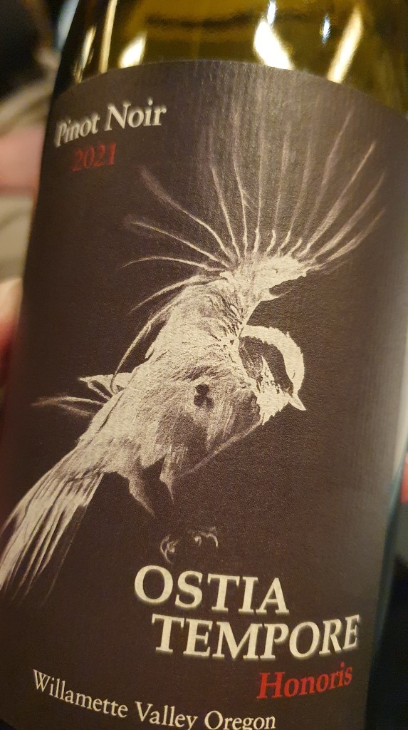2021 Ostia Tempore Honoris Pinot Noir, courtesy of Anthony. Deep purplish core, proffering a forward balance of fresh dark berries of moderate intensity. Very cleanly structured with refined purity and lean definition, finishing with, perhaps, just a hint of match-stick smokiness. An effort by Domaine de la Romanée-Conti in Willamette Valley, Oregon.
