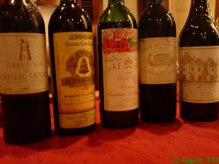 We started with an oddity, the 1994 Ch Gruaud Larose (courtesy of KP), showing a rusty evolving red, rather soft, quite intense and plummy, still harboring a significant degree of minerality leading to a stern finish. Fairly complex, but devoid of opulence and aromatics and, ultimately, lacking in real distinction.